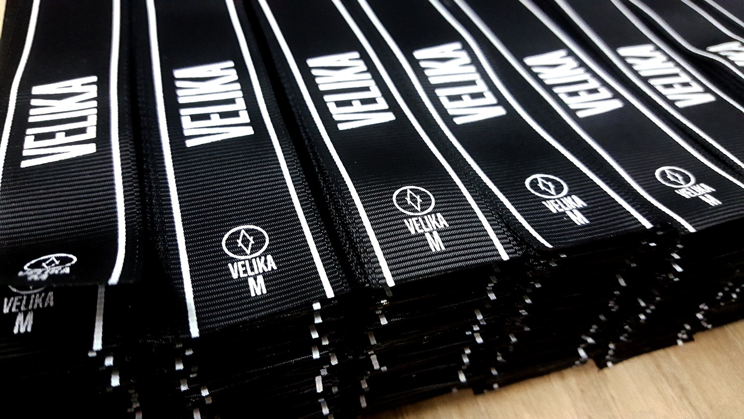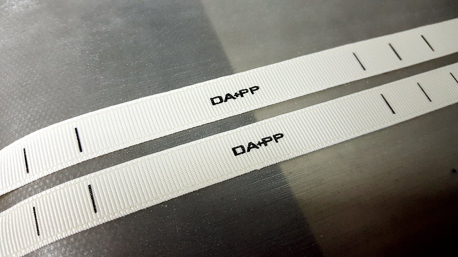 บริการสั่งพิมพ์ Logo บนเทปก้างปลา (เนื้อคอตตอน, เนื้อโพลี, เนื้อสปันด์), เทปผ้าเชือกแบนลายก้างปลา, แถบเทปผ้าต่อไหล่ สำหรับติดแถบ หรือตกแต่งงานบนเสื้อผ้า